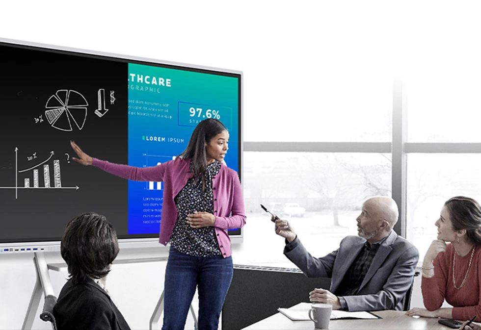 Het 116-inch 4K UHD-flatpanel geeft een nieuwe definitie aan teamsamenwerking door omslachtige apparatuur te vervangen door één enkele, geïntegreerde oplossing, waardoor efficiëntere communicatie wordt bevorderd.
